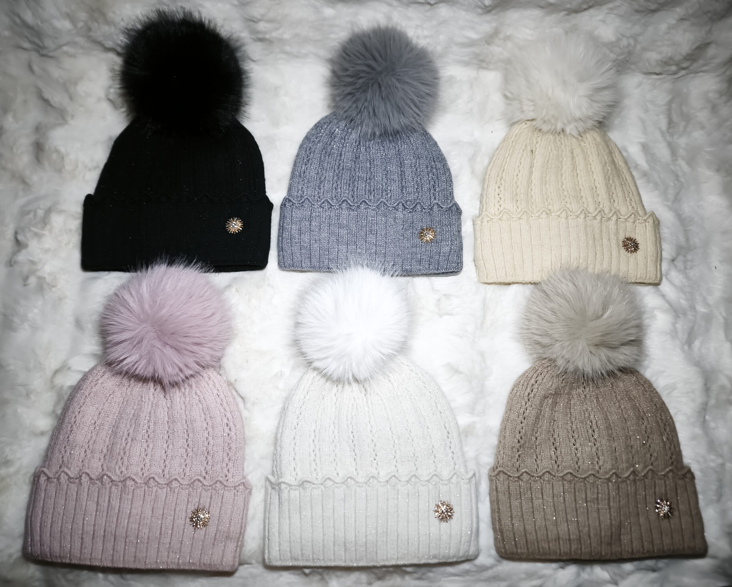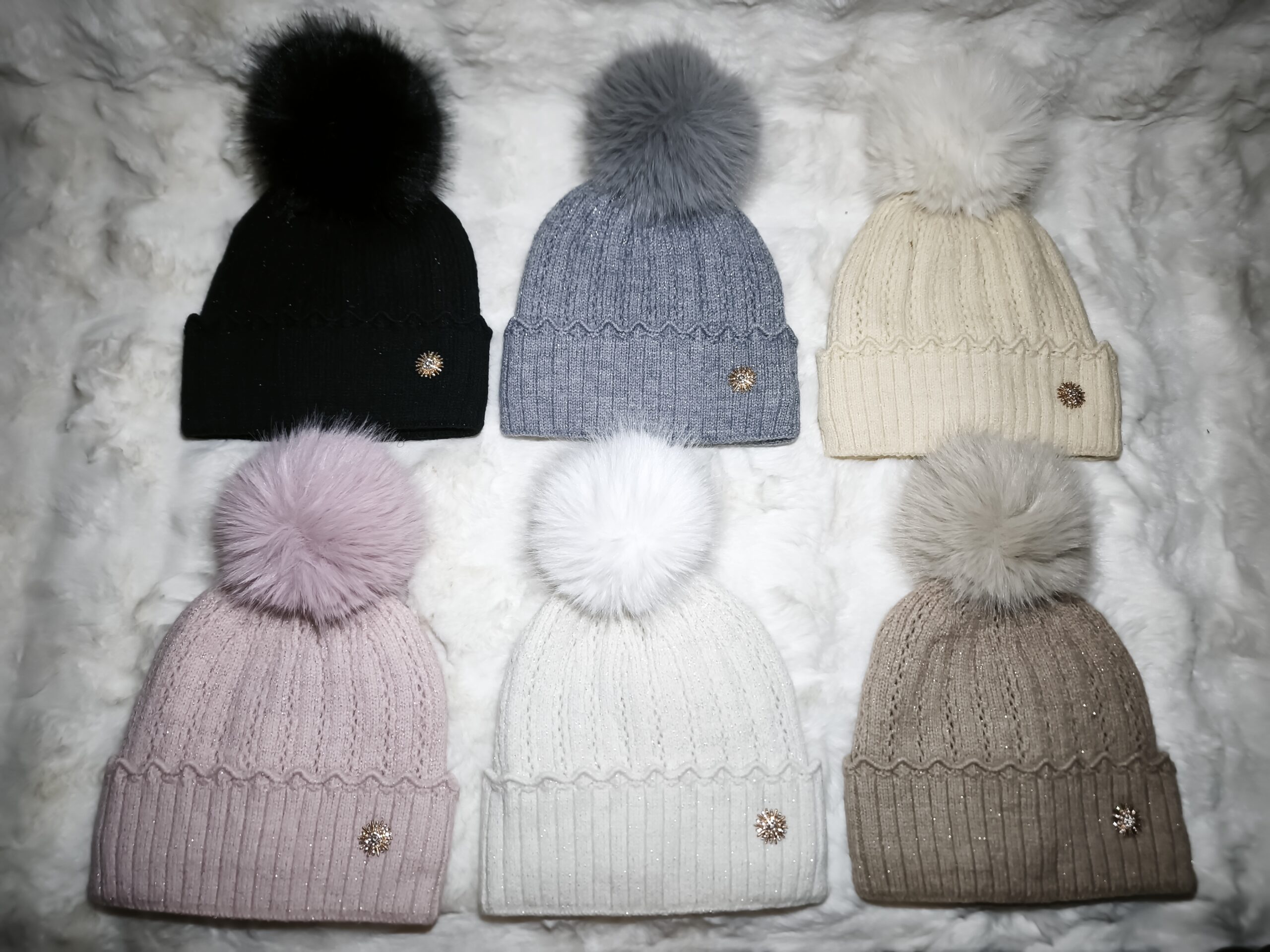 Skład: 55% acryl 30% wizkoza 15% wełna Kolory: Czarny Szary Beżowy Kremowy Biały Różowy
