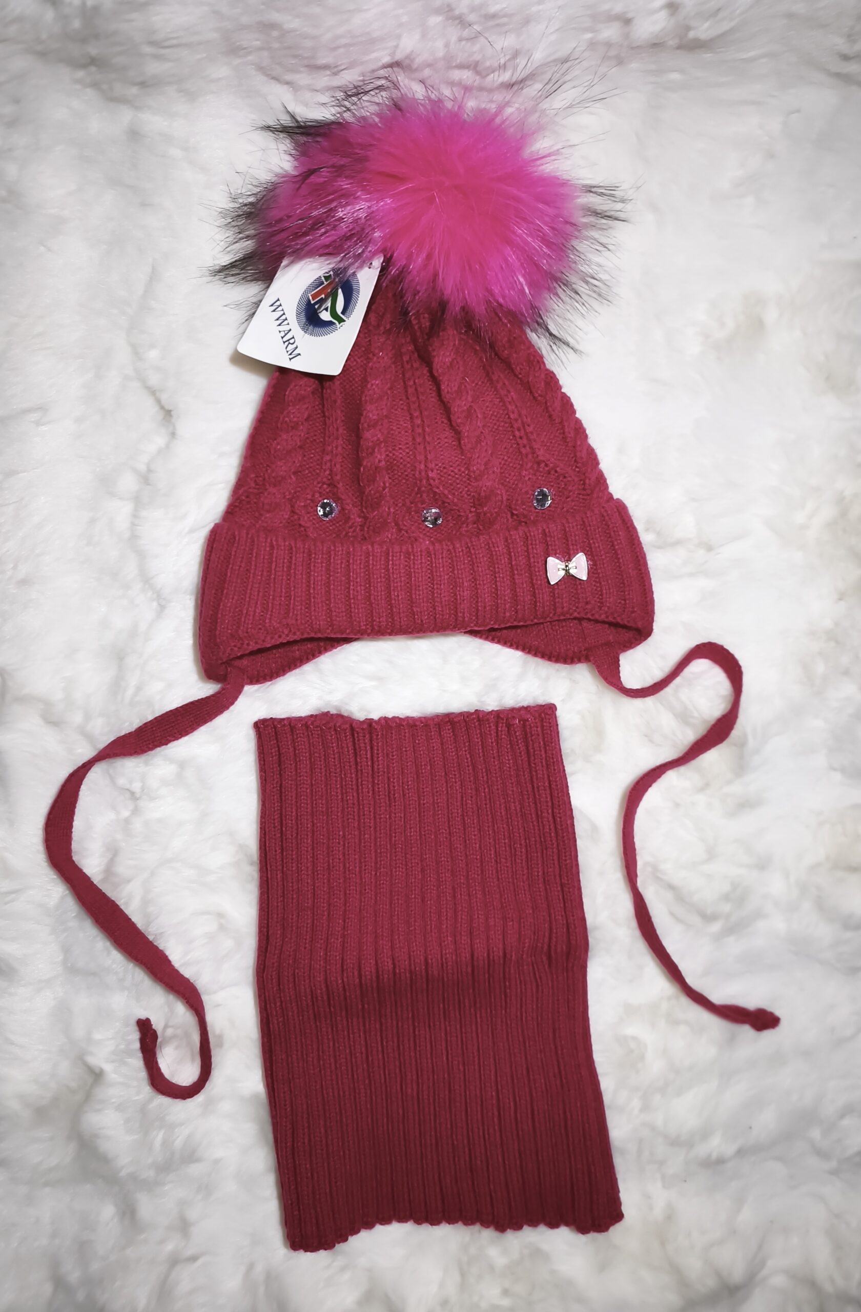 komplet dziecięcy podszewka polarowa (czapka wiązana+komin), produkt polski, jakość pierwsza