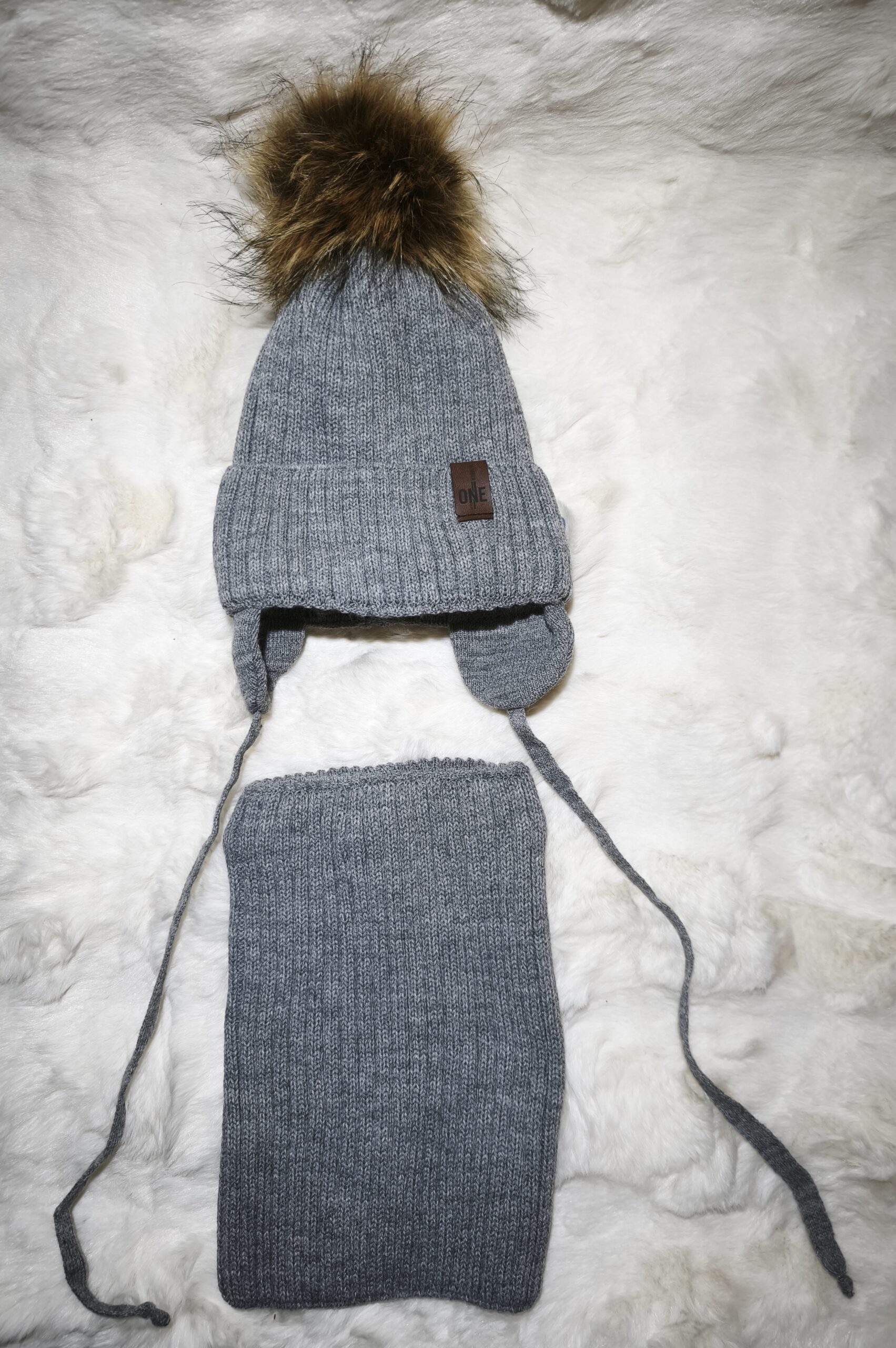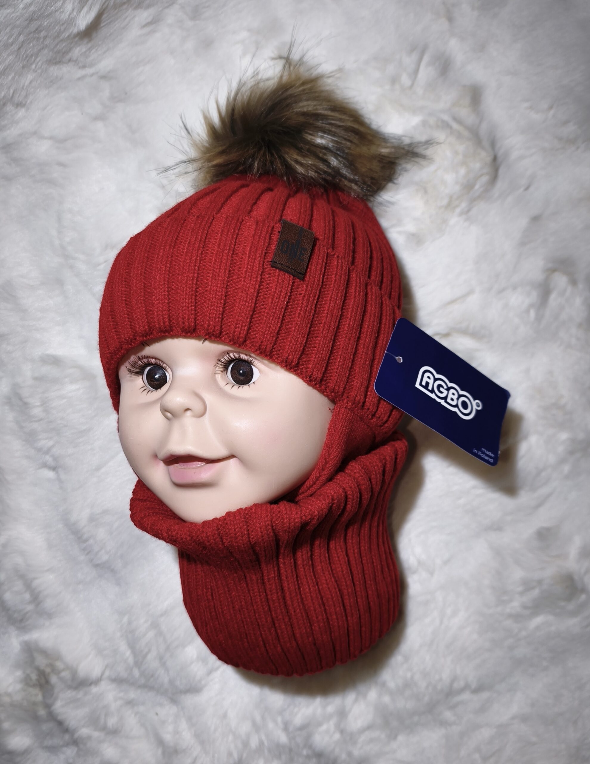 komplet dziecięcy podszewka polarowa (czapka wiązana+komin), produkt polski